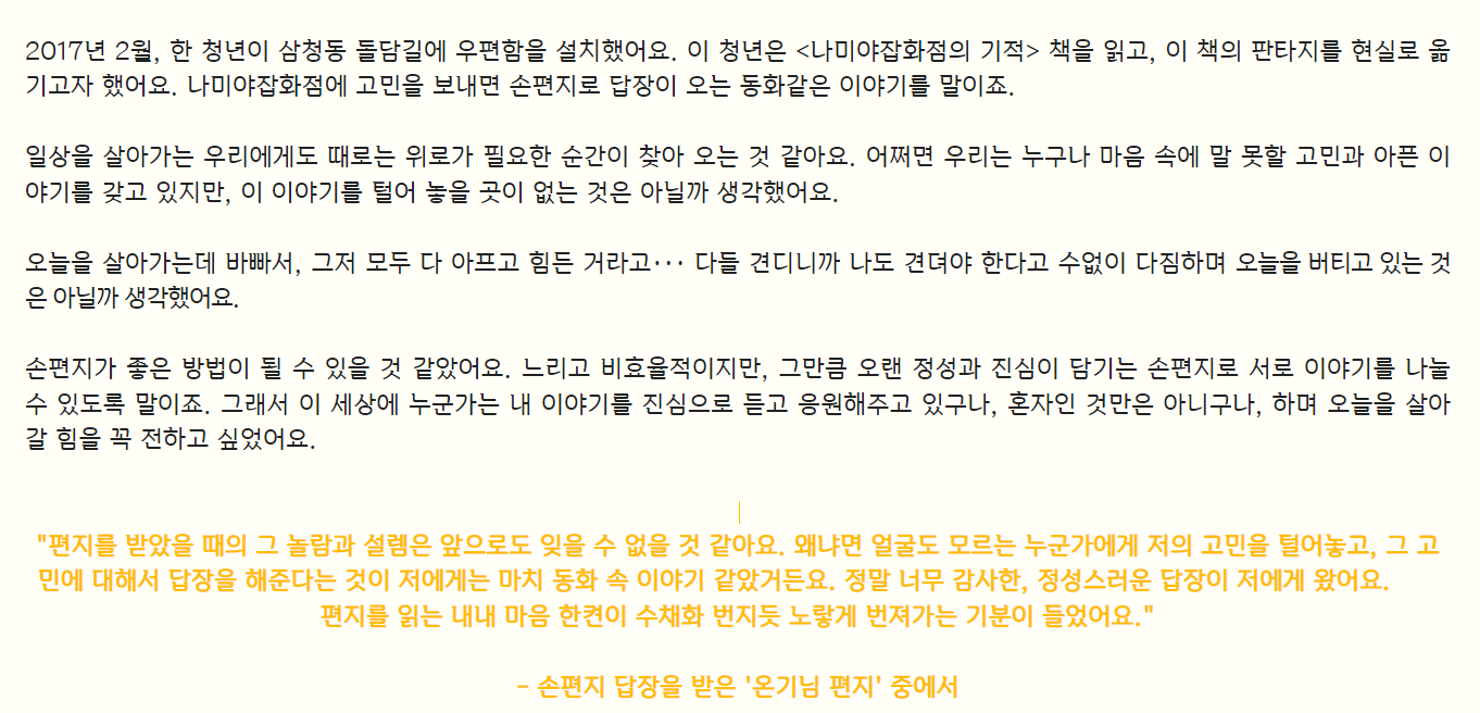 익명으로 고민을 보내면 손편지로 답장이 오는 동화같은 우편함