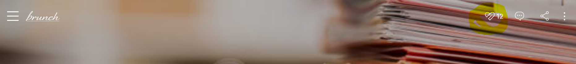 오른쪽 위에 하트모양이 '좋아요'의 의미인 '라이킷'. 브런치에서는 좋아요 = 라이 킷이라고 표현한다.