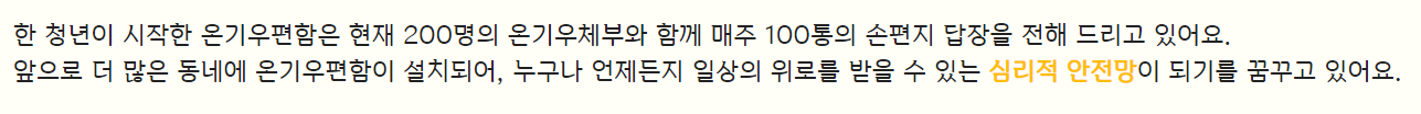 '온기부 우체부' 나는 이런것이 있다는 걸 오는 처음 알았는데, 글을 쓰면서 우리 챌린지 방에 계신 분 중에 몇 분이나 알고 계실까 살짝 궁금해졌다.