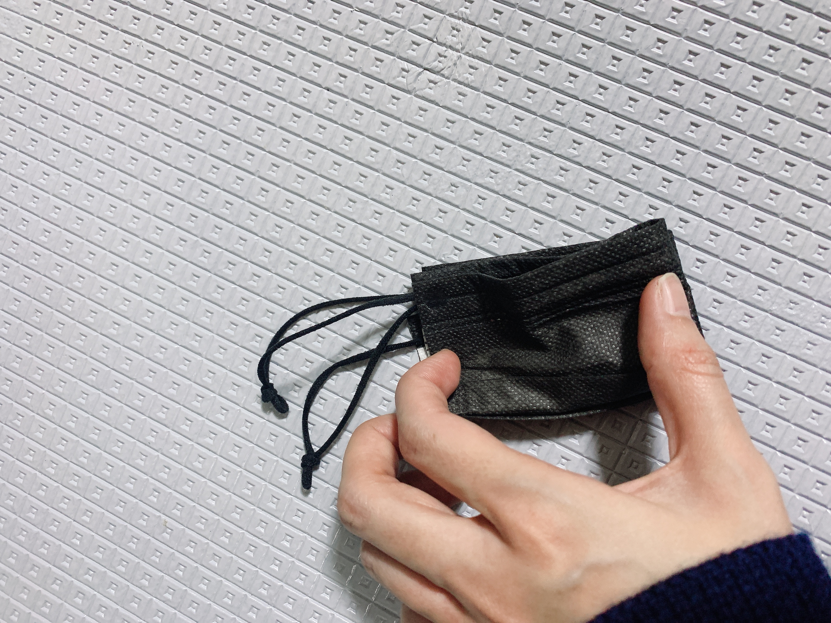 주위 사람들도 이런 접이형 일회용 마스크는 끈이 길어서