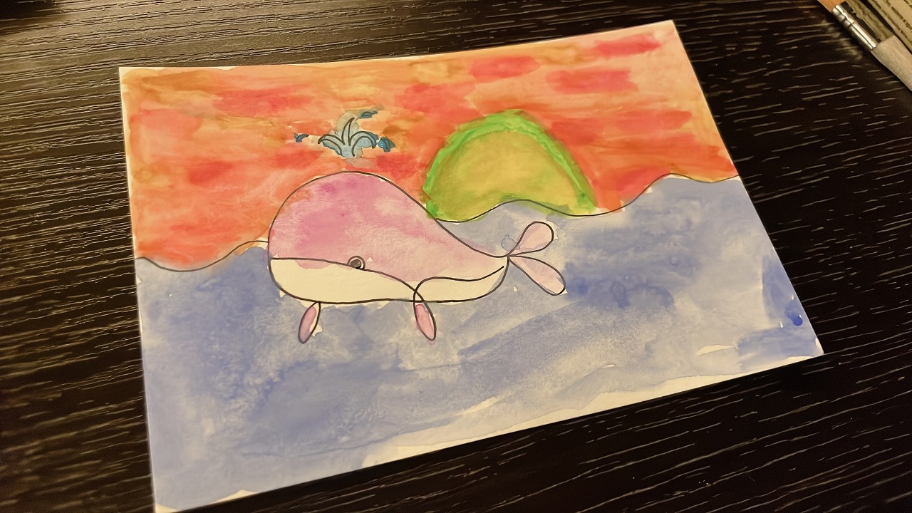 아들램의 어반스케치 수채화 버젼! 이모랑 합심해서 고래에 채색도 이쁘게 잘 끝냈다.