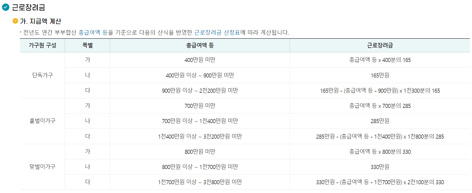2024 근로 자녀 장려금 지급 금액