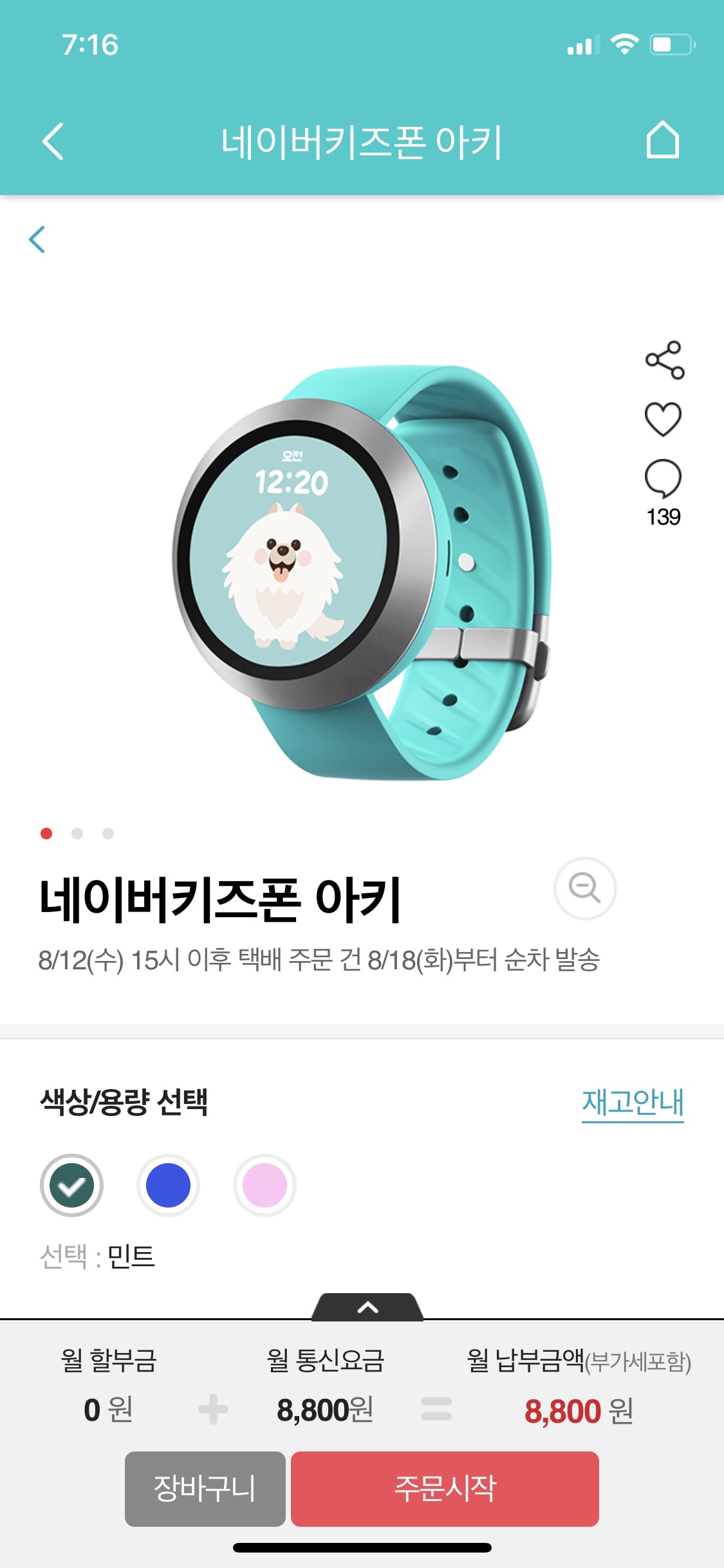 예쁜 민트색으로 선택했어요~ㅋㅋㅋ