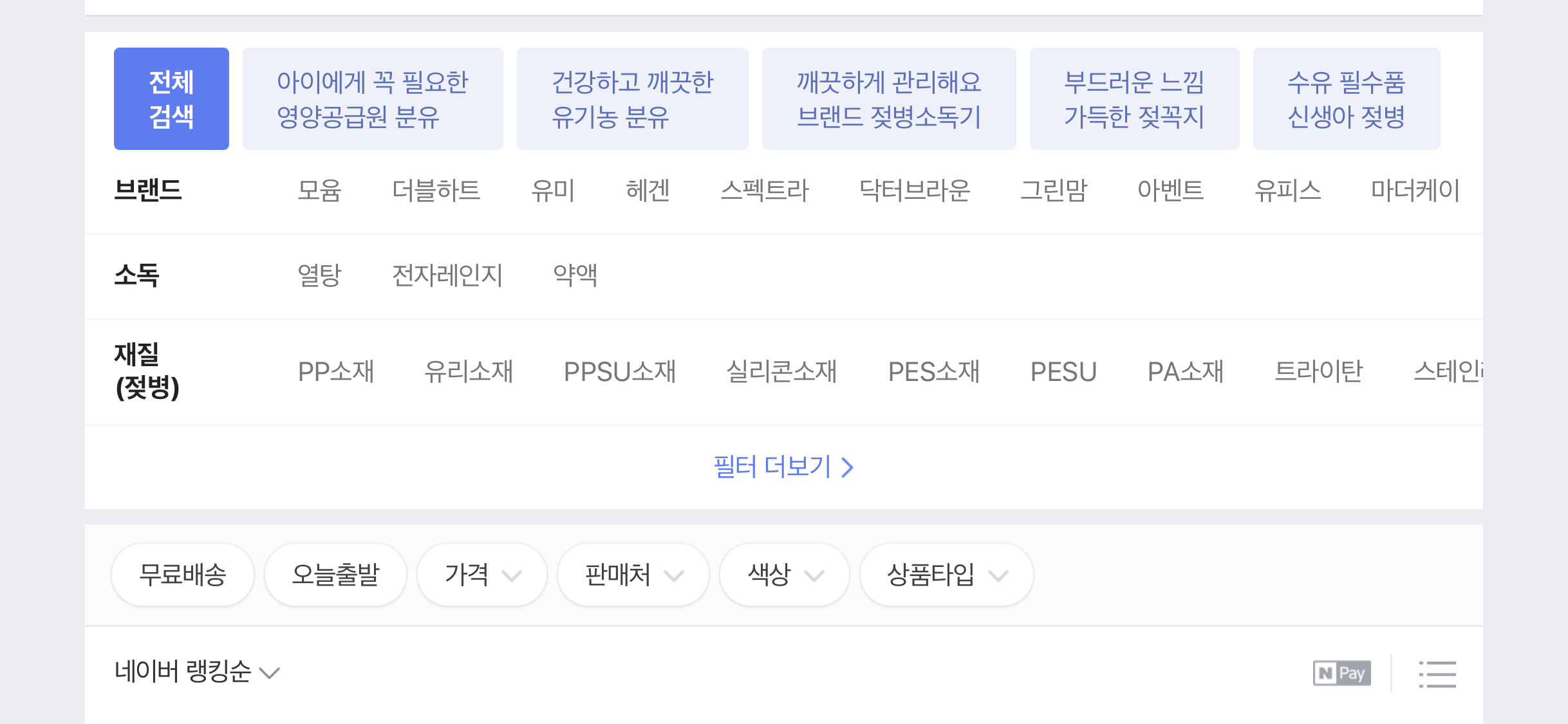 브랜드안에도 젖꼭지 사이즈, 병 재질, 용량, 기능 등등이 있는데
