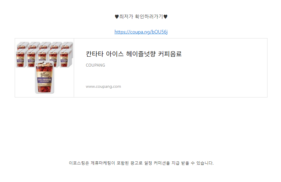 칸타타 아이스 헤이즐넛향 커피음료 190ml*50개