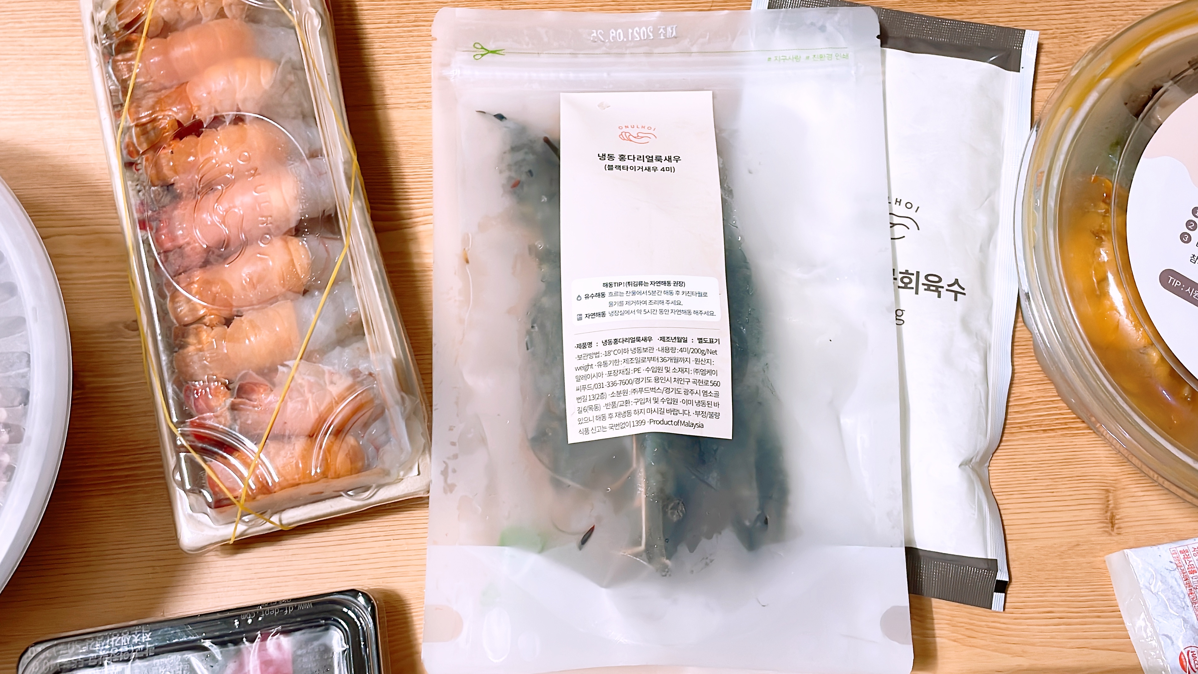 제가 제주도에서 그렇게 먹겠다고 온 손을 찔려가며 까먹었던 딱새우가 반쯤 노출된 상태로 가지런히 2층으로 줄지어 서 있습니다.